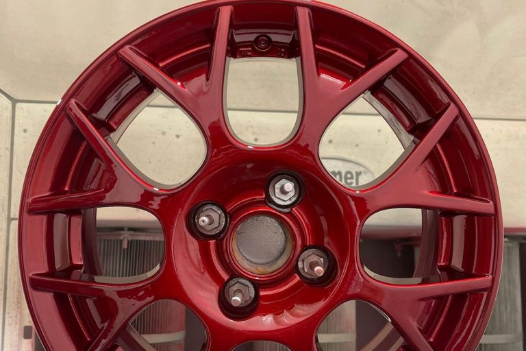 Pulver kommt elektrostatisch auf die Felge, wird eingebrannt – hält viel besser als flüssiger Lack.